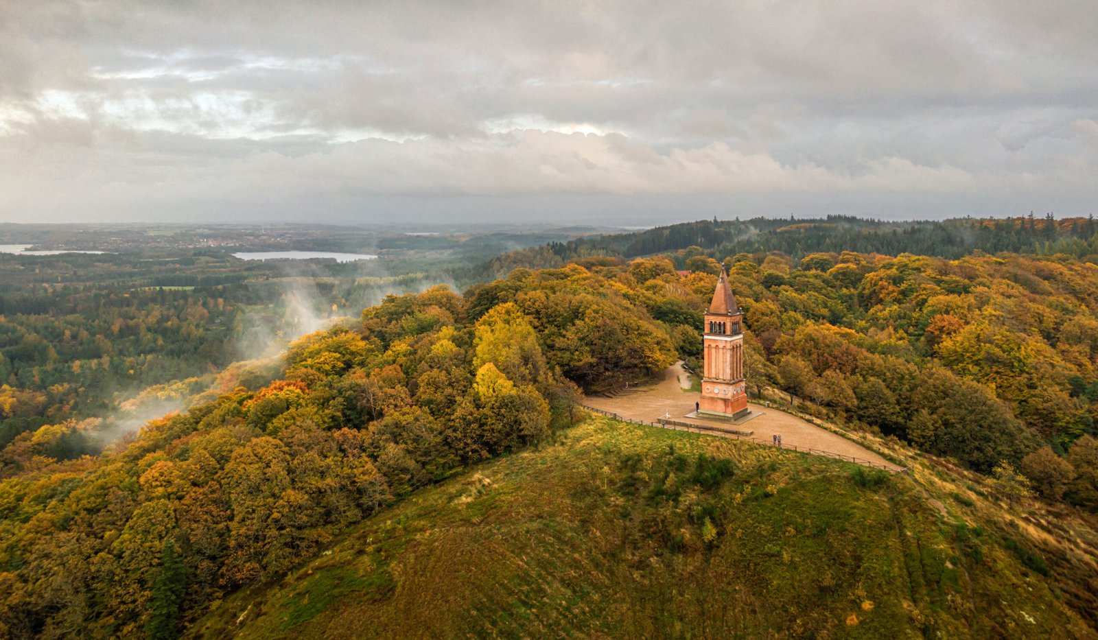 In the heart of Jutland, not far from the charming town of Silkeborg, lies Himmelbjerget – literally “The Sky Mountain”. At 147 metres it’s no Alpine peak, but in the Danish landscape it feels like a summit of significance. From the top you have a breathtaking view over the forests and lakes of Søhøjlandet, the ‘Lake Highlands’. In autumn the entire area transforms into a mosaic of red, yellow and copper, while morning mist slowly drifts across the water. A place where you naturally slow down and experience that typically Danish sense of calm.