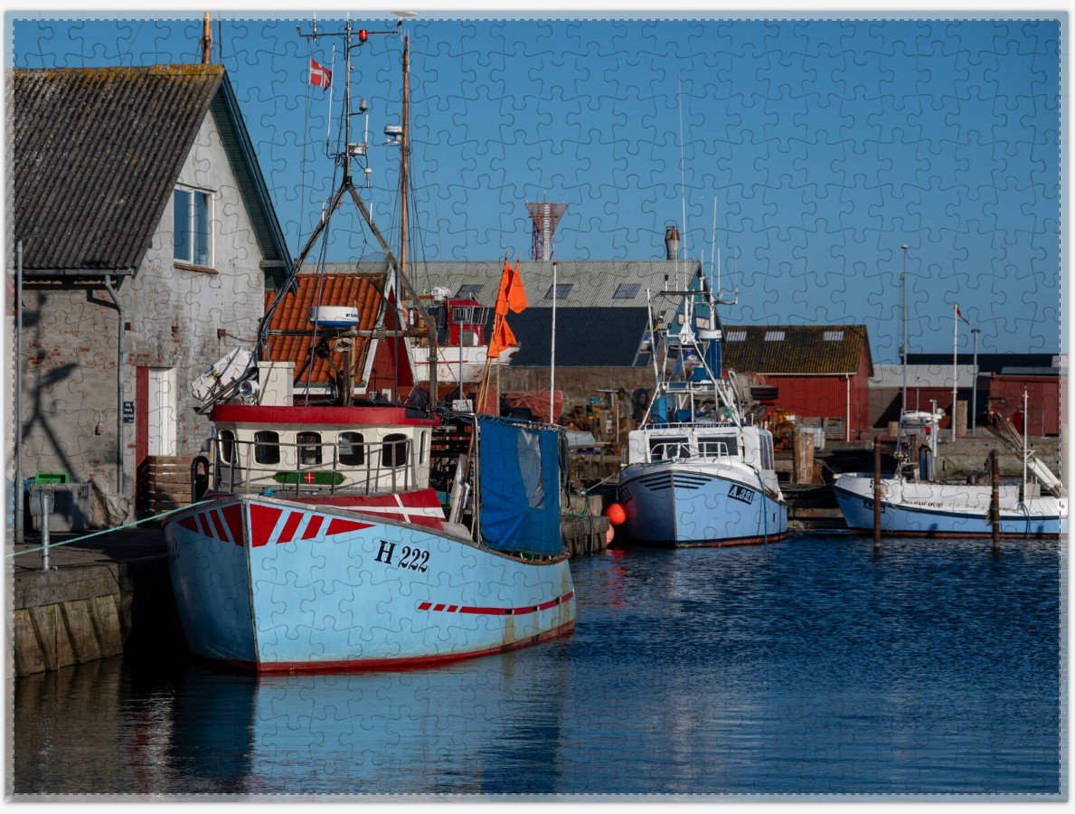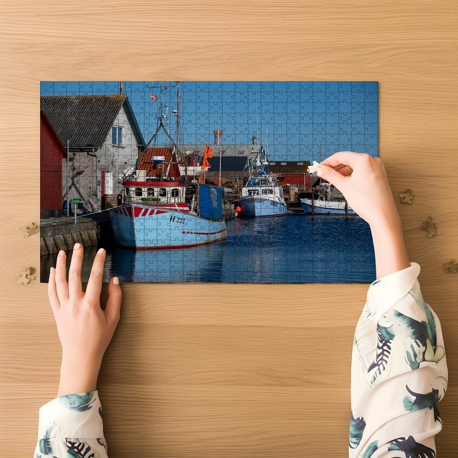 Beleef de charme van een Deense vissershaven met deze Haven Puzzel. Op de afbeelding zie je een typisch Scandinavisch tafereel met kleurrijke boten tegen een helderblauwe lucht die rust uitstraalt. De variatie tussen boten en omliggende gebouwen en het water maakt de puzzel leuk om te leggen. De egale stukken lucht en water bieden nét genoeg uitdaging voor wie van puzzelen houdt.
