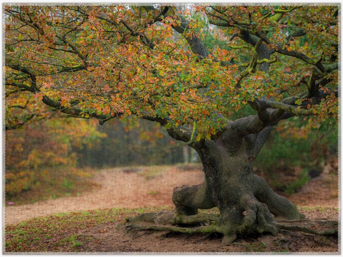 Ontdek de rust en kracht van de natuur met deze unieke puzzel van Spothunter. De oude eik in de herfst, met zijn grillige stam en kleurrijke herfstbladeren, straalt een tijdloze schoonheid uit. Deze hoogwaardige puzzel is een prachtige manier om de magie van de herfst naar binnen te halen. Perfect voor lange avonden, alleen of samen met vrienden en familie.
