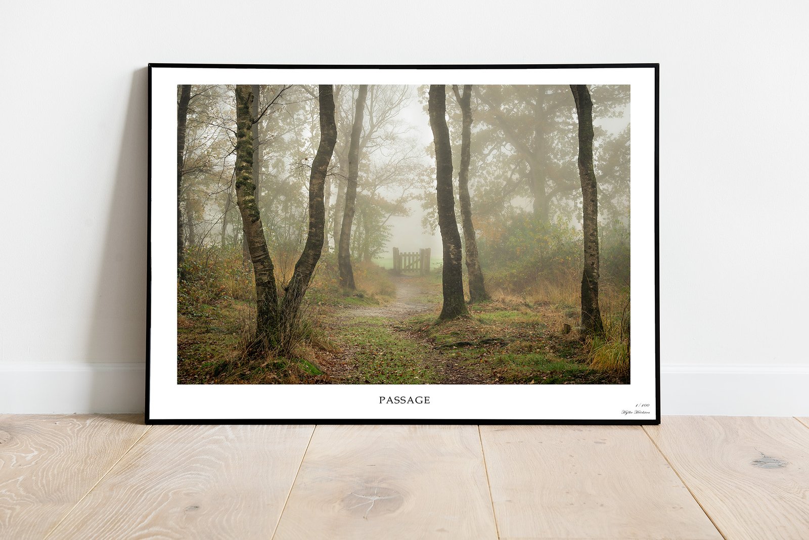 Stap de stilte in met Passage – een fine art print die de dromerige sfeer van een mistig bos vangt. Het pad en het houten hek nodigen uit tot verbeelding en symboliseren een overgang naar rust en verstilling.